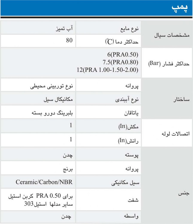 ویژگی های پمپ آب نیم اسب خانگی ابارا مدل PRA 1.00 :